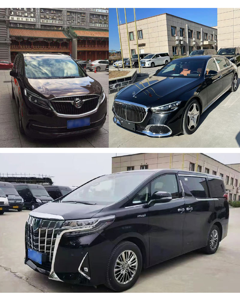 商务车型:别克GL8、奔驰威霆、奔驰V260、奔驰斯宾特、GMC萨瓦纳、丰田埃尔法、雷克萨斯LM300h等豪华商务车;